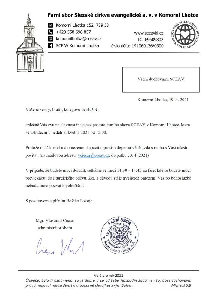 Přehled bohoslužeb – Porządek nabożeństw 2026