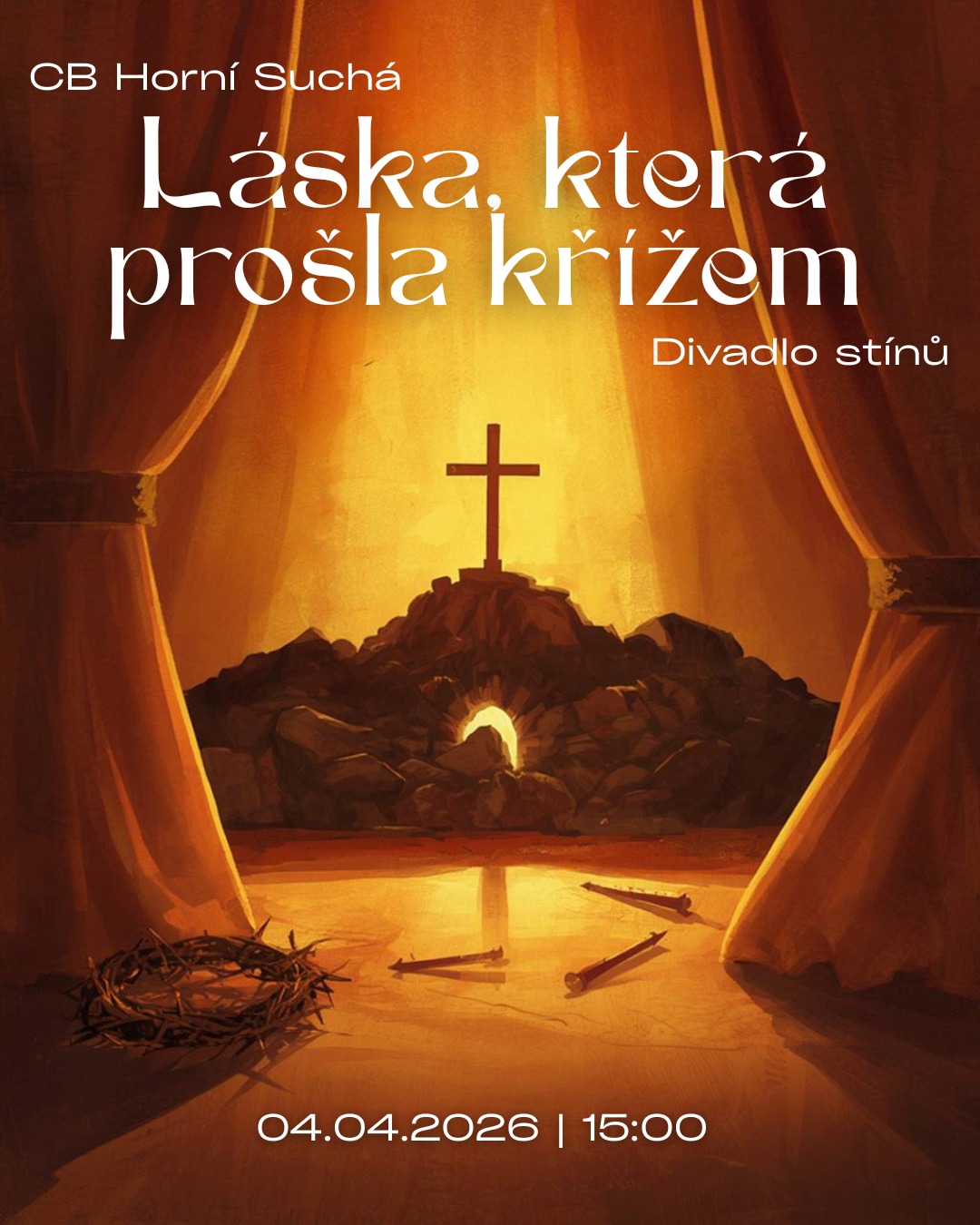 Na Velkou sobotu 4. dubna máme pozvání do Církve bratrské v Horní Suché, kde v 15:00 h začíná Divadlo stínů s názvem „Láska, která prošla křížem“. Jedná se o divadelní představení připravené ukrajinskou skupinou. Divadlo je v jazyce českém, jsme tedy všichni zváni.
